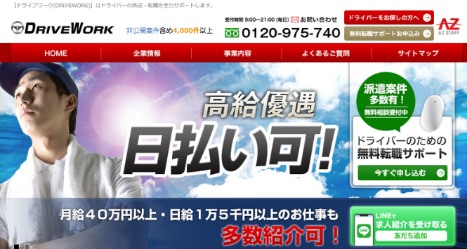 | 3 | ドライブワーク(株式会社アズスタッフ) | 4,000件以上 | 約800件 | × |