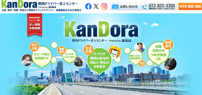関西ドライバー求人センター(株式会社ビッグス)は、関西地方のドライバー派遣に特化した派遣会社で、トラックドライバー派遣を中心に多くの求人を取り扱っています。